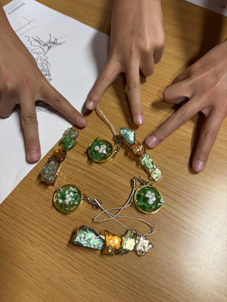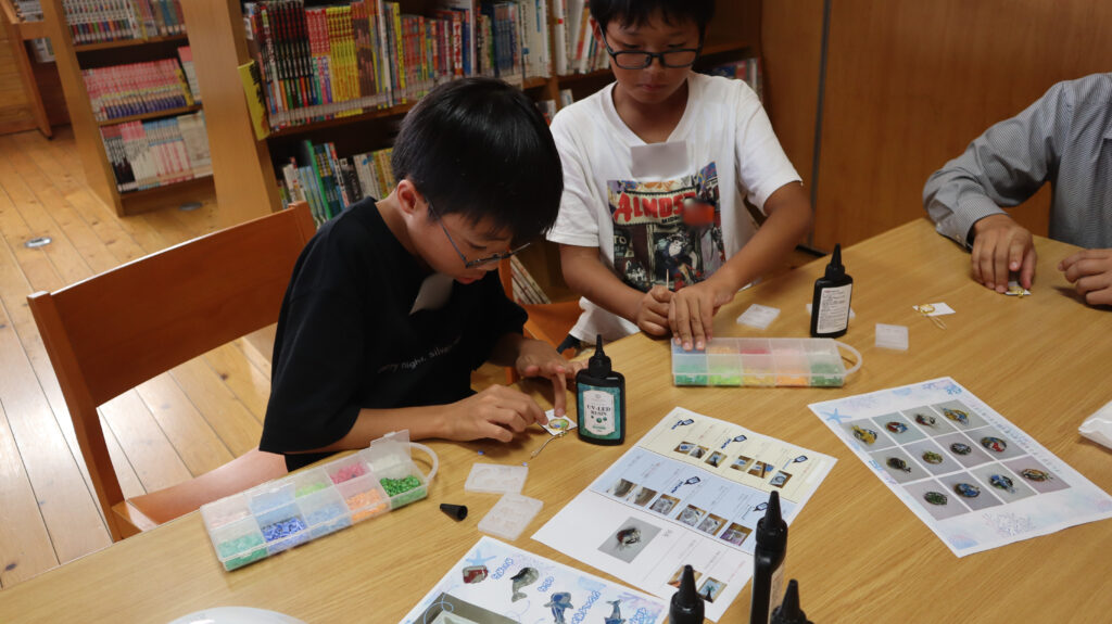 その後のワークショップでは、それぞれが好きな海洋ごみや廃プラを選び、さらに好きな海の生き物のパーツを組み合わせて、世界にひとつだけのオリジナルキーホルダーを作成💎