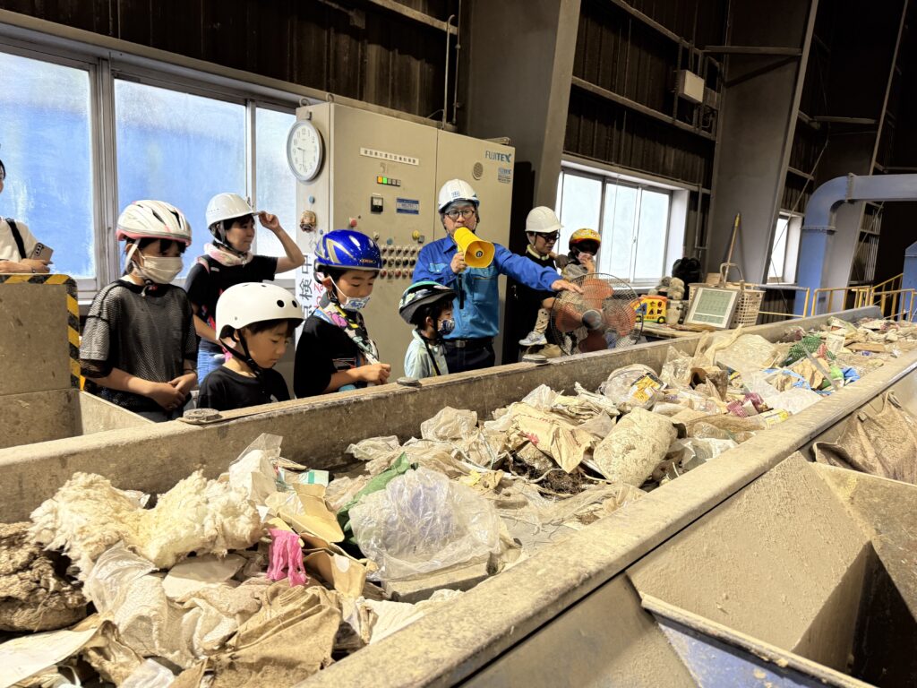 場内をまわって産業廃棄物が分けられる様子、リサイクルされる様子を間近で見て学びます📒✍